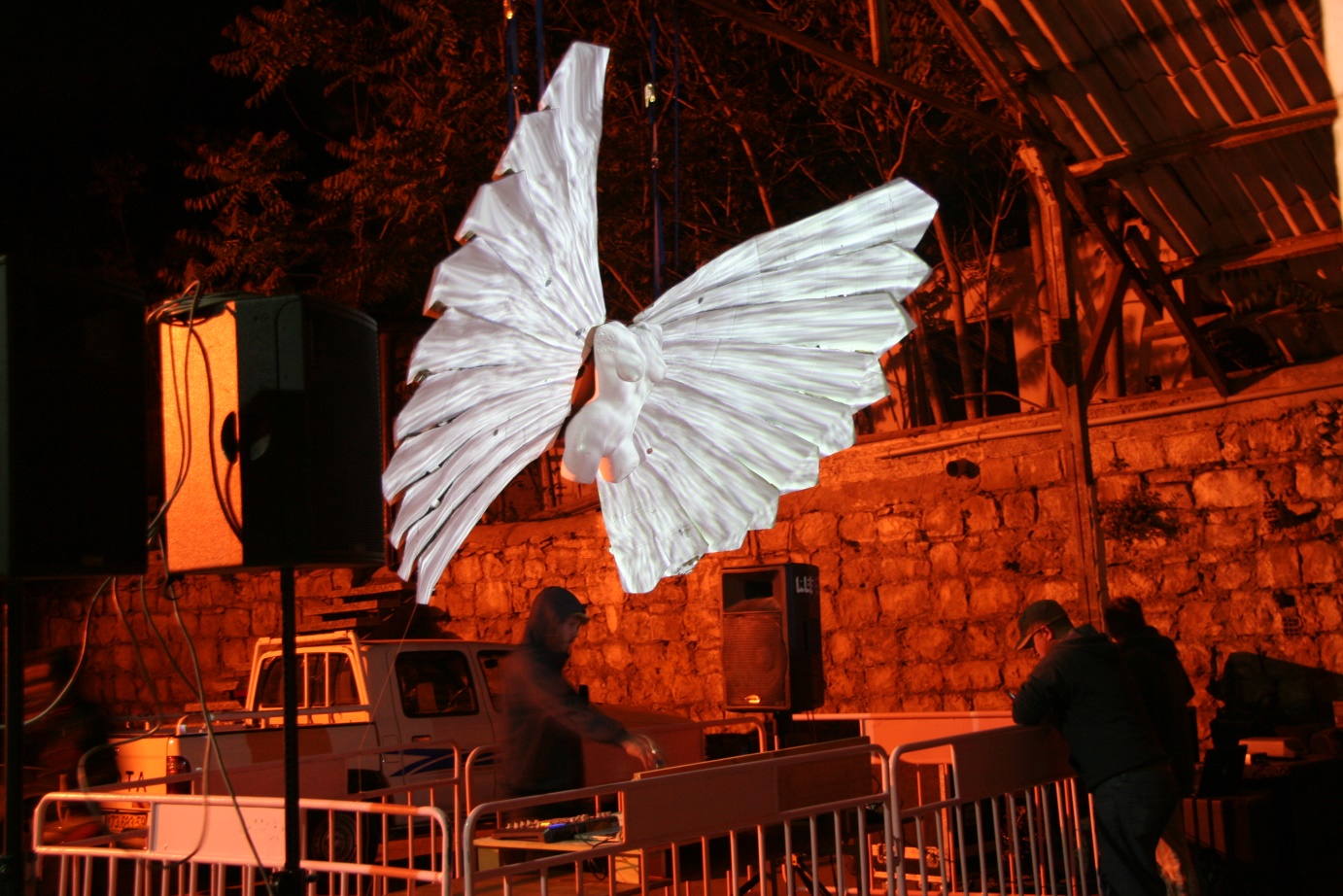 מעבר למצעד הרודנים, מעל העמדה ברחבה החיצונית נתלה לו מלאך, עליו הוקרנו ויז'ואלז. המלאך נבנה בירושלים, נחנך במסיבה תל-אביבית, וחזר לעיר הקודש כדי להשתלט על הרייב ולתת משקל-נגד לקים זונ'ג און, המנהיג הנערץ. בסרטון הזה תוכלו לראות גם איך הוא נבנה. התרשמנו.