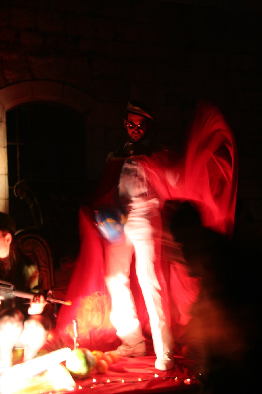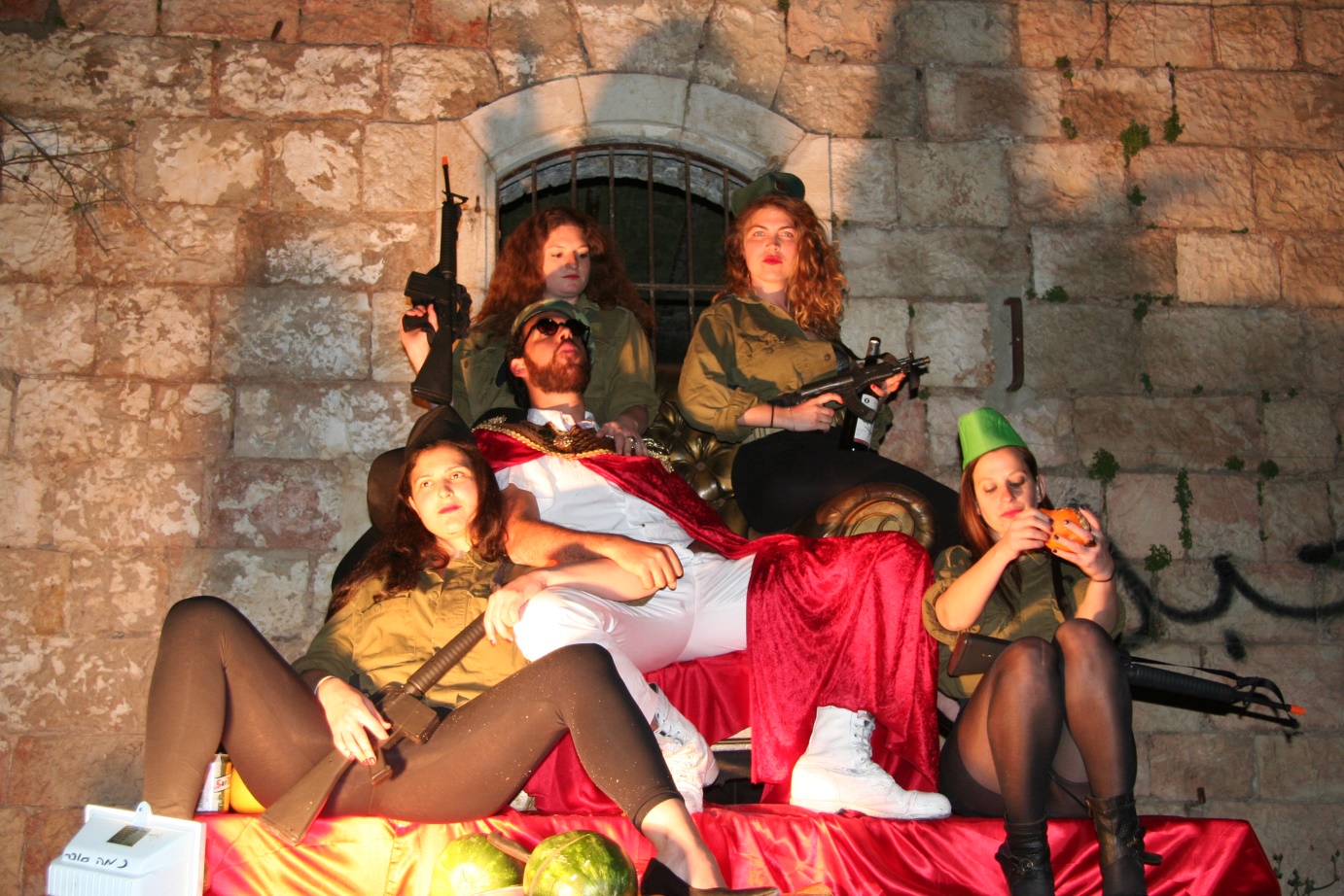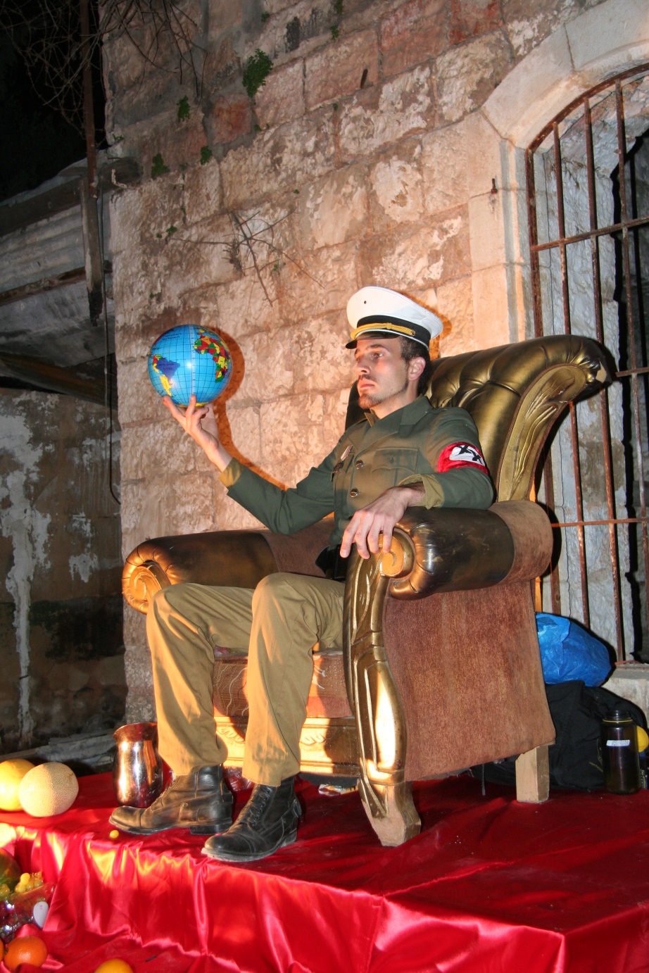 הרייב מתחיל לבעבע בתוך המבנה ומחוצה לו. לצד המלאך המפואר מיצגי דיקטטורים גונבים את תשומת הלב של הנכחים. גנרל בצבא העם מסובב את העולם על האצבע הקטנה, והדיקטטור הגדול מנופף בגלימתו לכל עבר. המשמר הנשי(אותי) שומר על הסדר, מה שלא ימנע מהדיקטטור לחשוף מאוחר יותר אי-אלו איברים מוצנעים לצינת הלילה הירושלמי, ולהשפריץ בקבוקי יין-נתזים על כל דורש, וגם על כל מי שאינו דורש.